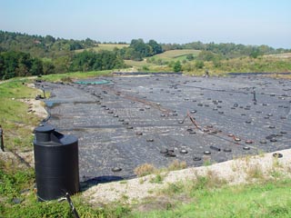 シートを被せた ゴミ埋立地 |