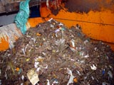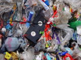 分別・圧縮され、搬出を 待つプラスチック |