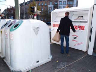| 収集を待つ古着 | 古着収集コンテナ | 古着収集コンテナ | 古着収集コンテナ | 古着収集コンテナ |