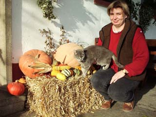 クヌーブル婦人と猫 カボチャは豊かな実りと収穫のシンボル。ドイツでは"HOKKAIDO"という品種が味の良さで人気。 |